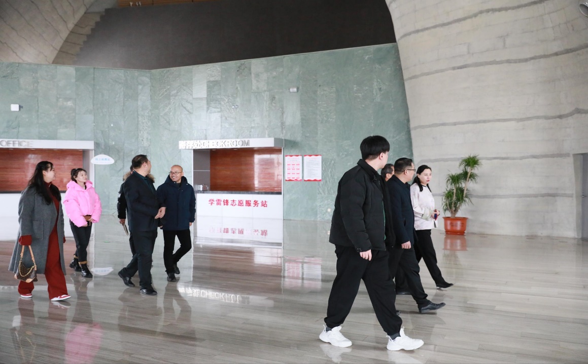 座谈结束后,张建英主任以及李晓泉副主任带领新闻与传媒学院一行参观了大剧场、小剧场、化妆间以及候场室等,并介绍了大剧场的设计理念和设计灵感。双方表示将继续加强合作,培养更多新媒体人才。