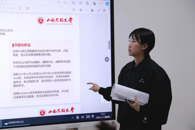 预答辩现场,各位研究生以PPT汇报的形式,围绕选题背景、研究思路、核心内容、创新点等关键环节,紧扣行业前沿,聚焦大同地方文化传承、文旅融合等地域特色,系统阐述了各自学位论文的阶段性成果。