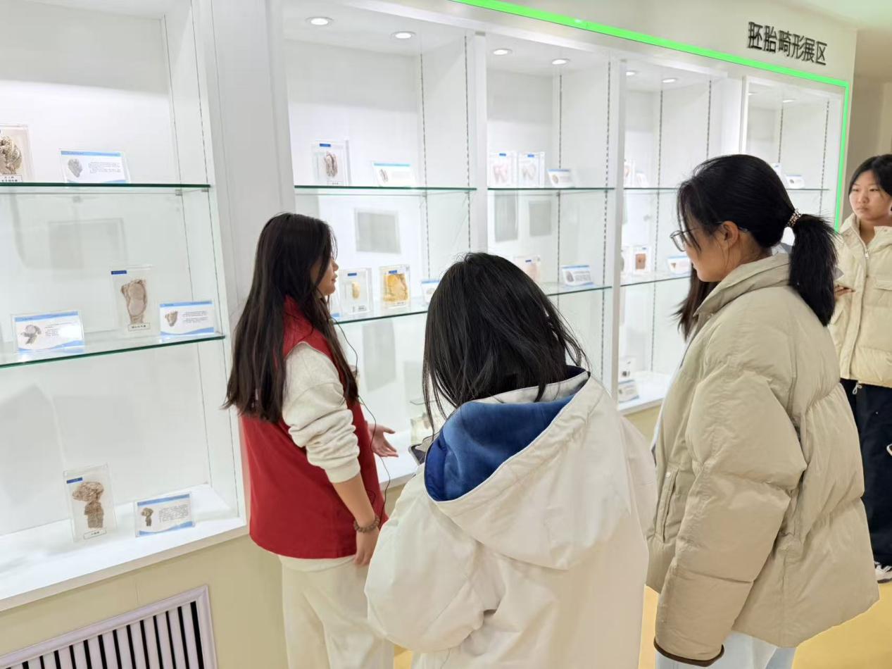 在参观过程中,同学们沉浸式探索人体生命科学领域的奥秘。在志愿者的讲解下,大家依次走进人体生命科学馆的展厅,对人体各大生理系统的结构有了直观认识,并通过病例展示清晰了解常见疾病的发病部位,近距离感受生命结构的精妙与健康的珍贵。