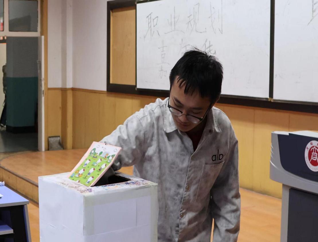 “职业盲盒挑战”通过分组抽取未知职业卡片,小组成员需说出该职业的关键词,使同学们深入了解到了各类职业的核心工作内容,为同学们以后了解各类职业,进入各类职业发展提前打下基础。