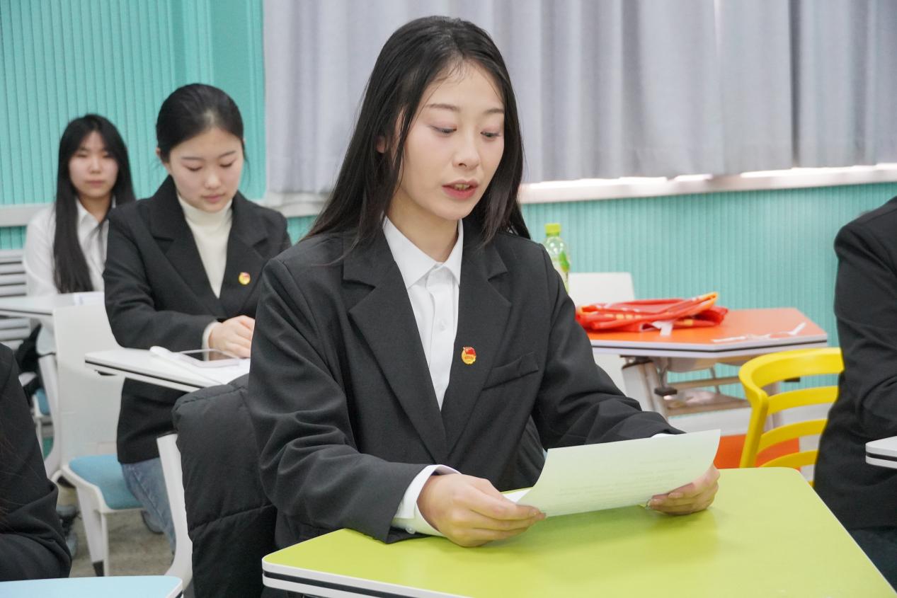 23级网媒二班团支书邢振华作为优秀学员发言,她希望各位青马学员以青春赴时代之约,以实干在各自的领域中发光,共同奔赴美好未来。