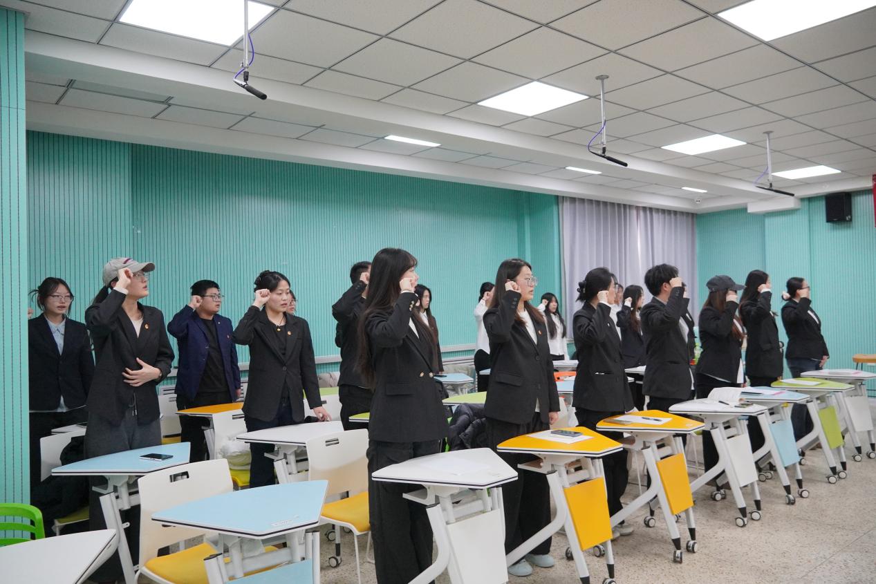 全体学员紧握右拳,跟随领誓人杨玲进行庄严宣誓,铿锵有力的誓言在会场中回荡。