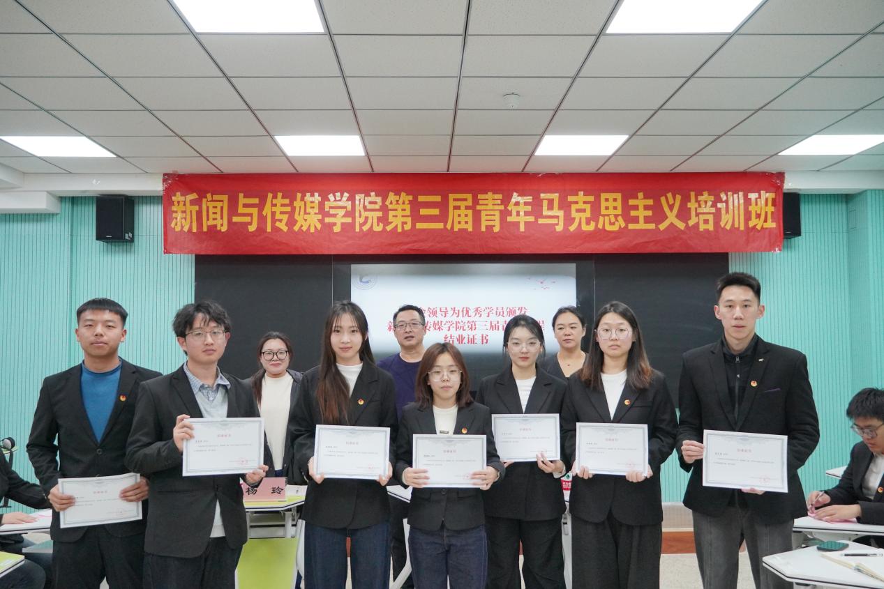 随后,参会领导为优秀学员颁发新闻与传媒学院第三届青马工程结业证书,结业证书不仅是成长的印记,也是历练的凭证,更是对学员坚守与奋进的肯定。