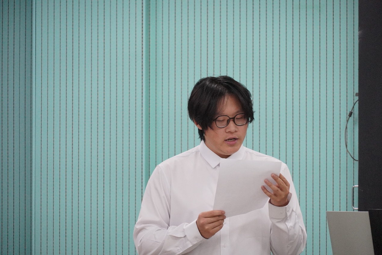 优秀团员代表25级新闻一班蔡璞蔚同学分享了他在团组织中的学习与实践体会。他勉励新团员们珍惜荣誉、勇担责任,将青春热情融入实际行动,不断追求进步。
