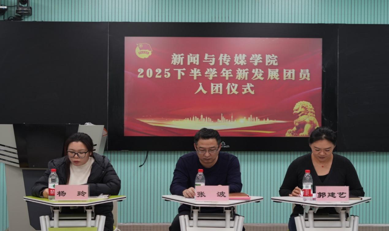 12月11日下午四点,我院在本真楼B607教室举办2025年下半年新发展团员入团仪式。学院党委书记张波,学院党委副书记郭建艺,学院团委书记、学工办主任杨玲出席仪式。此次入团仪式由杨玲主持。